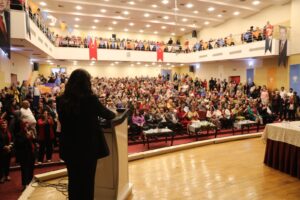 Toplantıya katılan yüzlerce partili kadın, hem geçmiş dönem çalışmalarını değerlendirdi hem de önümüzdeki dönem stratejileri üzerine fikir alışverişinde bulunarak güçlü bir dayanışma mesajı verdi.