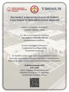 Göktaş ve Çelik, Tosmur Grup tarafından İmamoğlu‘nda yaptırılan Huzurevi ve Yaşlı Rehabilitasyon Merkezi’nin açılışını gerçekleştirecek.