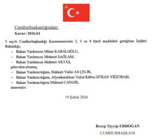 Cumhurbaşkanlığı tarafından yayımlanan karar, 19 Şubat 2026 tarihi itibarıyla yürürlüğe girdi.