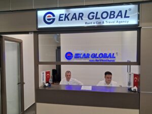 Yeni ofisle birlikte EKAR GLOBAL, bölgedeki hizmet standardını bir üst seviyeye taşıdı. Misafirler, uçuş sonrası terminal içerisinde anında araç teslimi alarak zaman kaybetmeden seyahatlerine devam edebilecek. Ekonomik sınıftan SUV seçeneklerine, premium ve elektrikli araçlara kadar geniş bir filoyla hizmet veren marka, 7/24 yol yardım ve müşteri destek imkânı ile de fark yaratıyor.