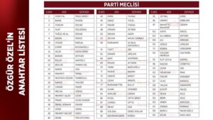 Cumhuriyet Halk Partisi Genel Başkanı Özgür Özel’in Parti Meclisi anahtar listesi netleşmeye başladı. Mevcut PM’deki 49 isim yerini korudu, Özel’in anahtar listesine 31 yeni isim girdi.