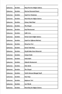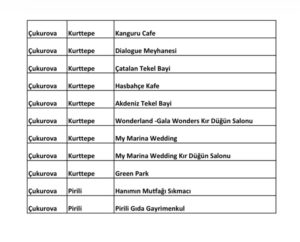 The Chapel, Cunda Balık, My Marina Wedding, Tahtalıköy Cafe, Kayıkhane Üstü Çay Bahçesi, Deveci Otantik Restoran, Anka Balık, Yelken Kulübü Yat Limanı, Cengiz’in Yeri, Lakerda Restoran, Marina Diamond Davet, Rüya Park Kır Düğün Salonu, Dalyan Balık, Atlantik Restoran, Altın Balık, Tarihi atmaca Mangal Keyfi, Başkan’ın Yeri, Green Park, Öz Hazalım Kafe, Mesut’un Yeri gibi tesislerin de bulunduğu birçok lokanta ve eğlence mekanı için Çukurova Belediyesi’ne resmi yazıyla yıkım kararı alınması yönünde bildirimde bulunduğu öğrenildi.