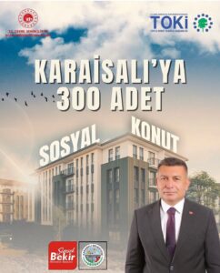 Toplu Konut İdaresi Başkanlığı (TOKİ) tarafından Türkiye genelinde başlatılan 500 bin sosyal konut projesi kapsamında Karaisalı’da 300 adet konutun inşa edileceği duyuruldu.