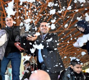 Başkan Kozay’ın sürpriziyle büyük bir coşku ve heyecan yaşayan çocuklar kartopu oynayıp doyasıya eğlenirken, etkinlik alanı çocukların mutluluk çığlıklarıyla yankılandı.