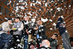 Yarıyıl tatili dolayısıyla Sosyete Pazarı’nda düzenlenen çocuk şöleninde çocukları karla buluşturan Başkan Kozay, kasası kar ile dolu olan kamyonun direksiyonuna geçip, getirilen karı şölen alanına kendisi boşalttı.
