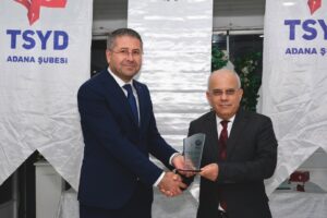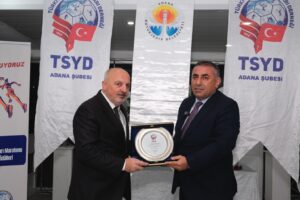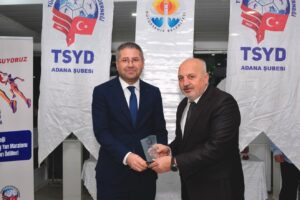 TSYD Adana Şube Başkanı Engin Kanber, Adana sporunu yaptığı katkılardan dolayı Büyükşehir Belediye Başkan Vekili Güngör Geçer ile Gençlik ve Spor Daire Başkanı Hasan Aydoğan’a plaket verdi.