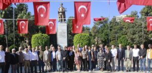 Tören, Atatürk Anıtı’na çelenk sunulmasıyla başladı. Ardından saygı duruşunda bulunuldu ve İstiklal Marşı büyük bir coşkuyla okundu. Katılımcılar ellerinde Türk bayraklarıyla “Ne Mutlu Türküm Diyene” sloganları attı.